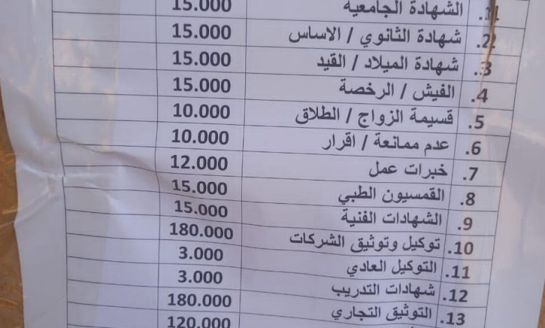 وزارة الخارجية – قائمة الرسوم التوثيق