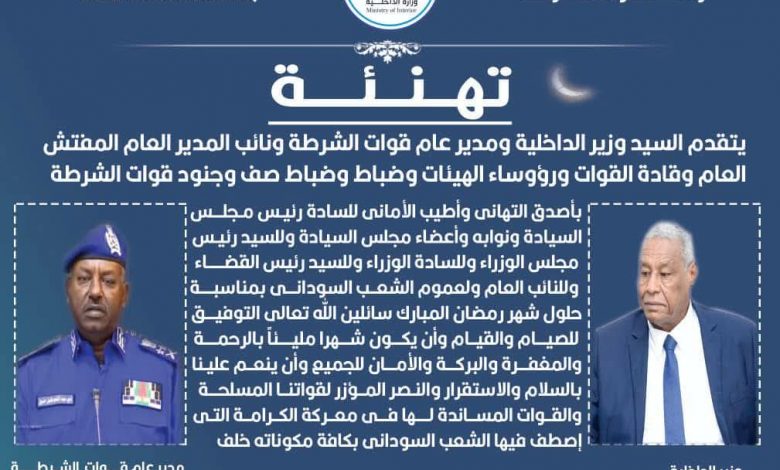 وزير الداخلية يتقدم بالتهنئة بحلول شهر رمضان المبارك:
